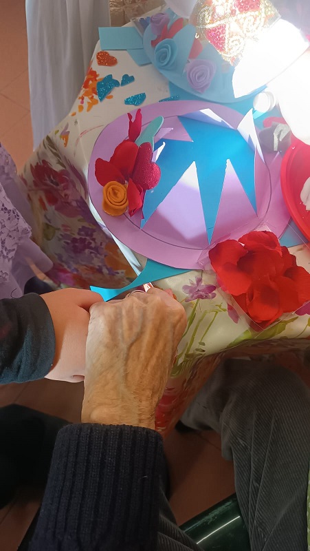 Un pomeriggio particolarmente speciale è stato invece l’incontro con i bambini della scuola primaria di Tavigliano che hanno fatto visita alla struttura nella giornata di giovedì 12 febbraio per un’esperienza tutta nuova: ospiti e bambini insieme in un laboratorio manuale di carnevale; sono stati realizzati simpatici cappellini a tema, unici e divertenti. È stato sicuramente un pomeriggio di allegria e condivisione che resterà impresso a lungo nella memoria di tutti.